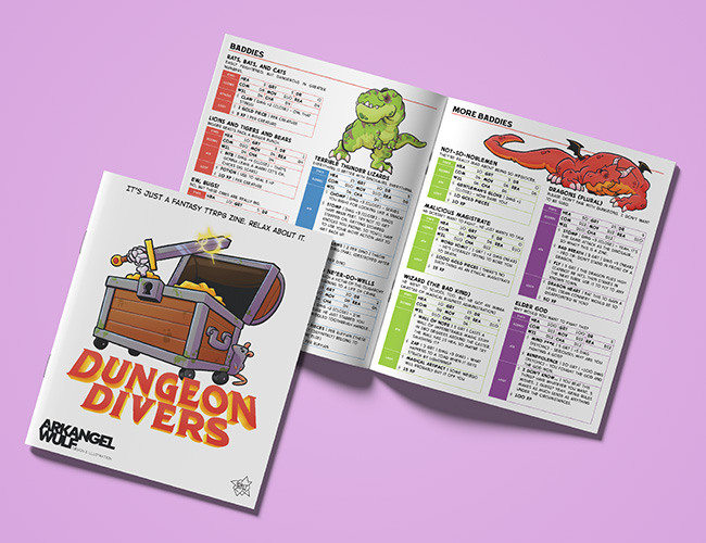 Choose from one of four species and four jobs to create your Dungeon Diver and head out on adventures with your friends, slaying monsters, helping the helpless, and fighting the Patriarchy! Just grab some dice and gather 'round, it's time to go dungeon diving!